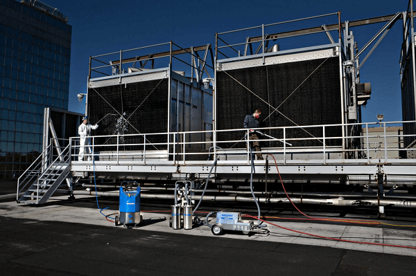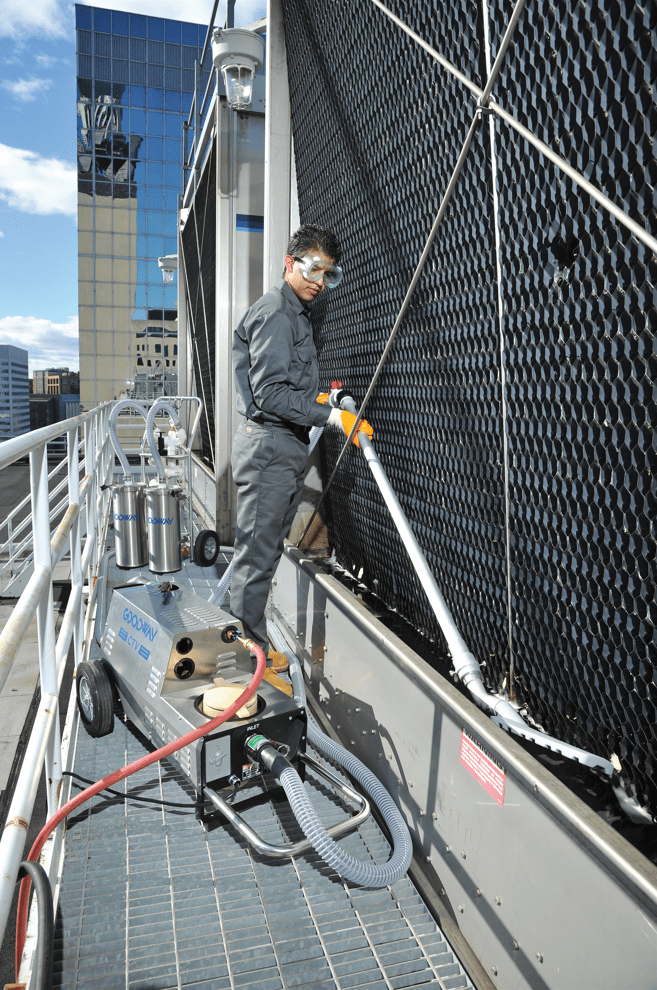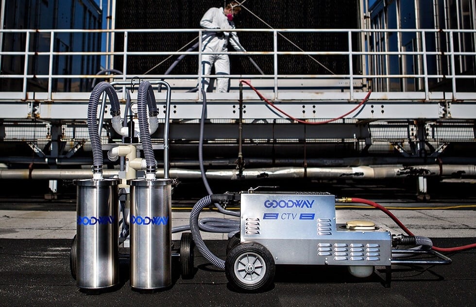 Koeltorenbassins zijn ideale locaties voor de groei van schadelijke bacteriën, en conventionele waterbehandeling kan biologisch materiaal niet volledig verwijderen. Alleen mechanische reiniging kan effectief vuil, slib en biofilm elimineren. Het Goodway® CTV-1501 systeem verwijdert op veilige en efficiënte wijze bacteriën – inclusief Legionella – en andere micro-organismen, evenals algen, modder en slib van de zijkanten en vloer van elk koeltorenbassin of opvangbak.