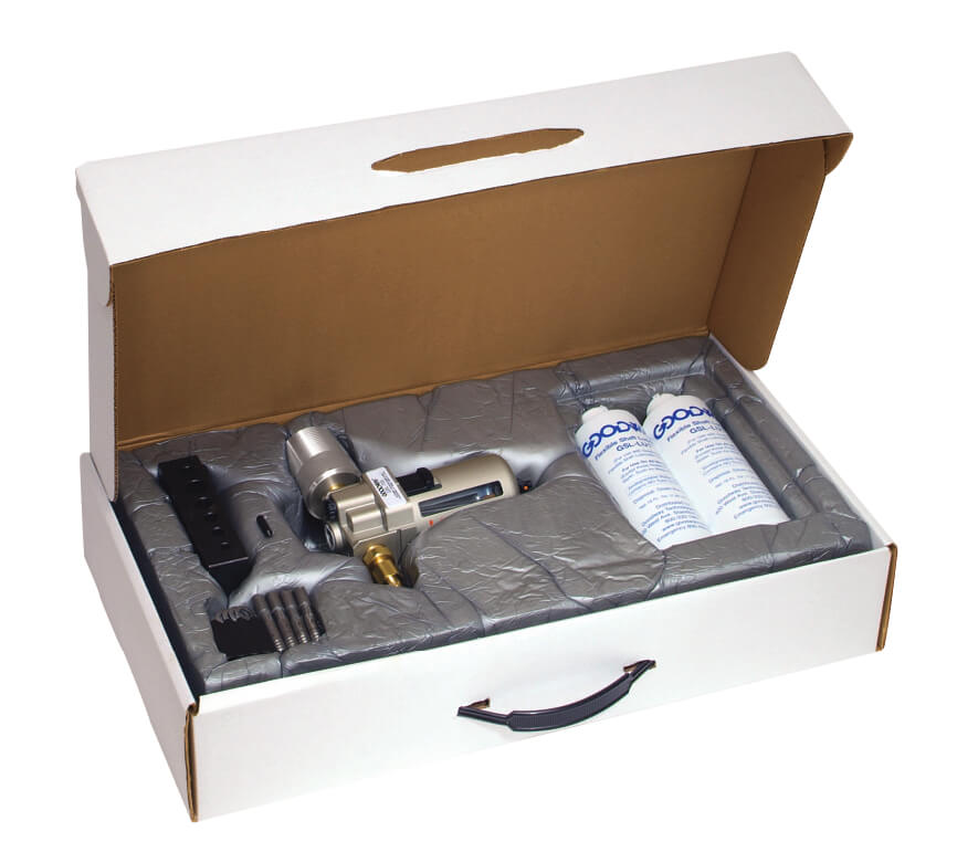 Goodway® flexibele as reparatiesets zijn ontworpen voor het repareren en onderhouden van blauwe Goodway® flexibele assen die worden gebruikt voor natte pijpreinigingstoepassingen.