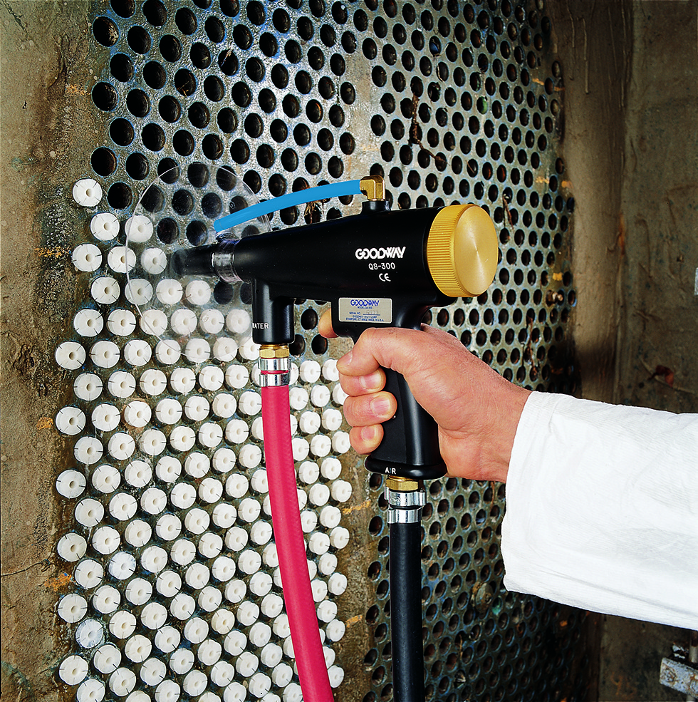 De QS-300 quick shot is ontwikkeld om te werken met de meeste Goodway® projectielen en verwijdert effectief lichte tot middelmatige aanslag uit warmtewisselaar- en condensorpijpen. In combinatie met Goodway® projectielen is het systeem bijzonder effectief tegen vervuiling zoals algen, slib, modder en biologische groei (biofilm).