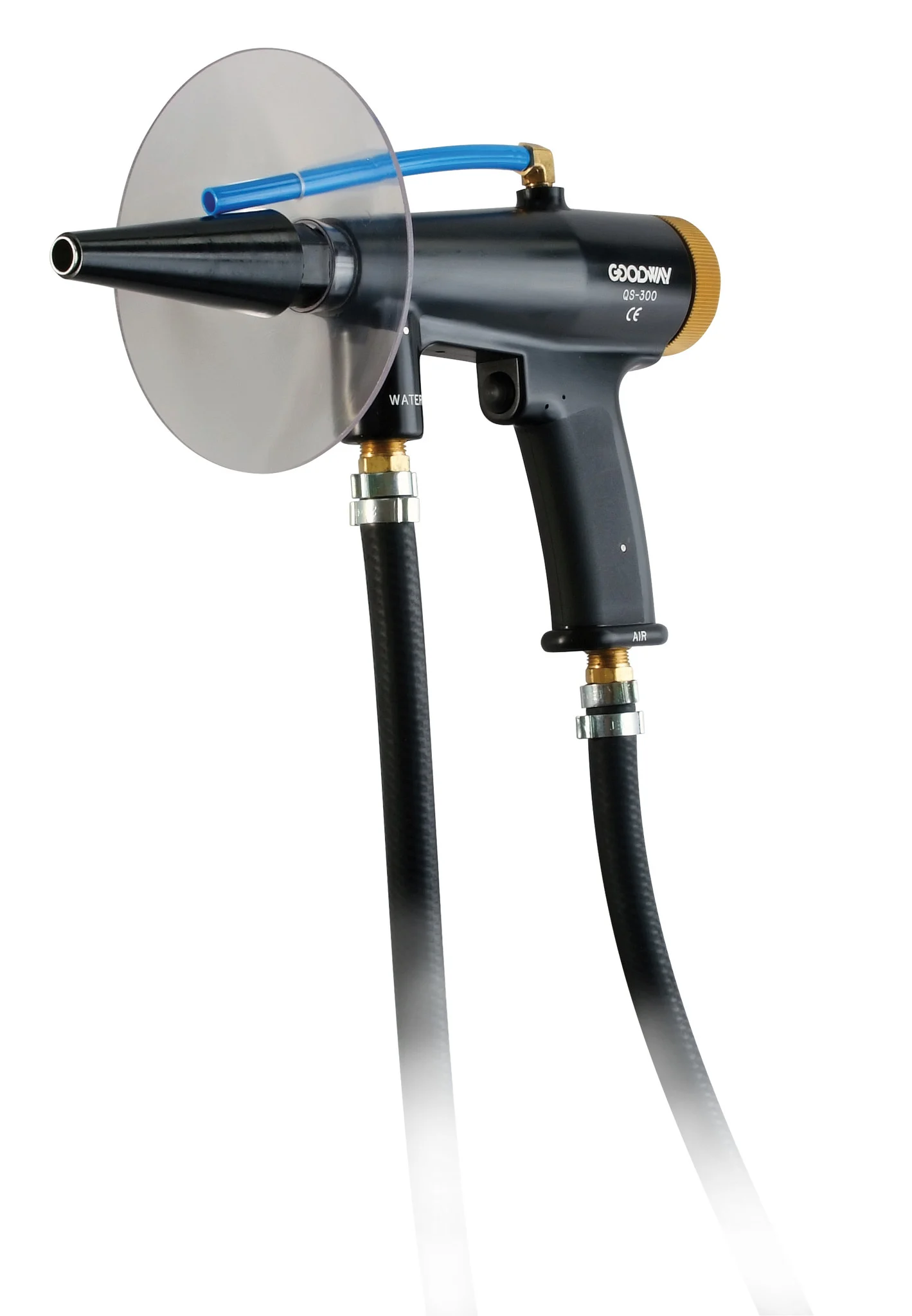 De Goodway® QS-300 quick shot combineert ongeveer 90% luchtdruk met 10% lagedrukwater, wat het een ideaal systeem maakt voor gebruik met Goodway®’s polyethyleen projectielen en nylon projectielen. De combinatie van lucht en water zorgt ervoor dat projectielen snel door de pijpen gaan en effectief een breed scala aan aanslag van de pijpwanden verwijderen.