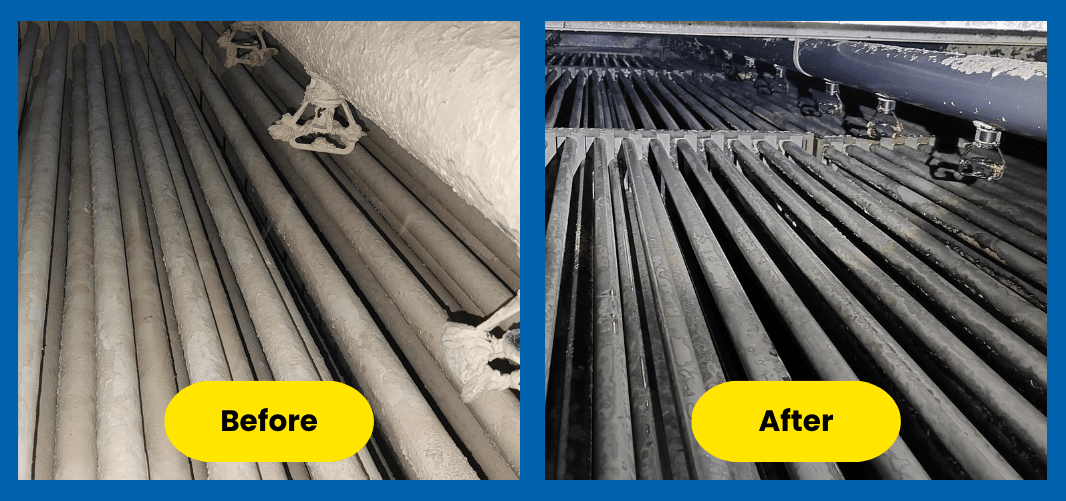 In een van onze fabrieken hadden we drie verdampingscondensors die volledig verkalkt waren. We namen contact op met Goodway Benelux, die een chemisch reinigingsproces aanbevolen met hun ScaleBreak-MP ontkalker. In totaal leverden zij 19.000 liter ScaleBreak-MP om kalk en biologische afzettingen te verwijderen. Begin 2025 voerden we meerdere circulatieprocessen uit met ScaleBreak-MP en verwijderden we met succes het grootste deel van de afzettingen uit de condensors. Het water komt nu weer in direct contact met de metalen oppervlakken en de verdampingssnelheden zijn aanzienlijk verbeterd, waardoor het reinigingsproces zeer succesvol is geweest!
