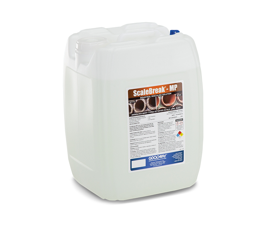 Goodway® ScaleBreak-MP is een uniek reinigingsmiddel ontworpen om vervuiling - zoals kalk, roest en biologische aanslag - uit warmtewisselaars, ketels en vele andere technische systemen te verwijderen. Dankzij de unieke formule is het veilig en effectief voor gebruik op een breed scala aan materialen.