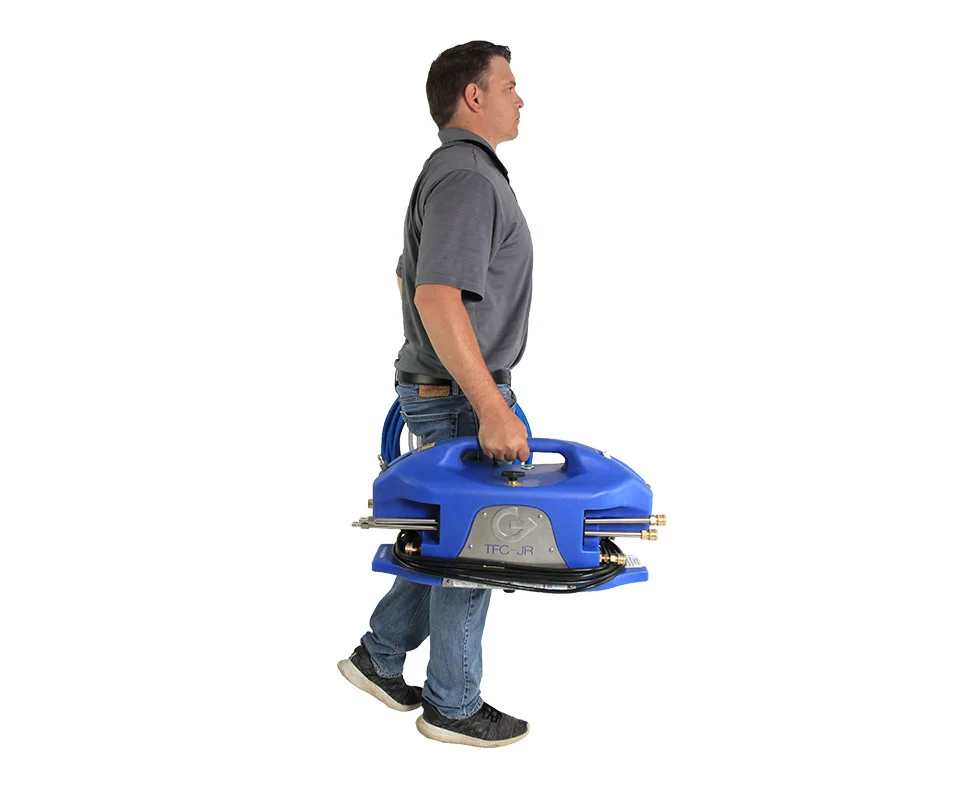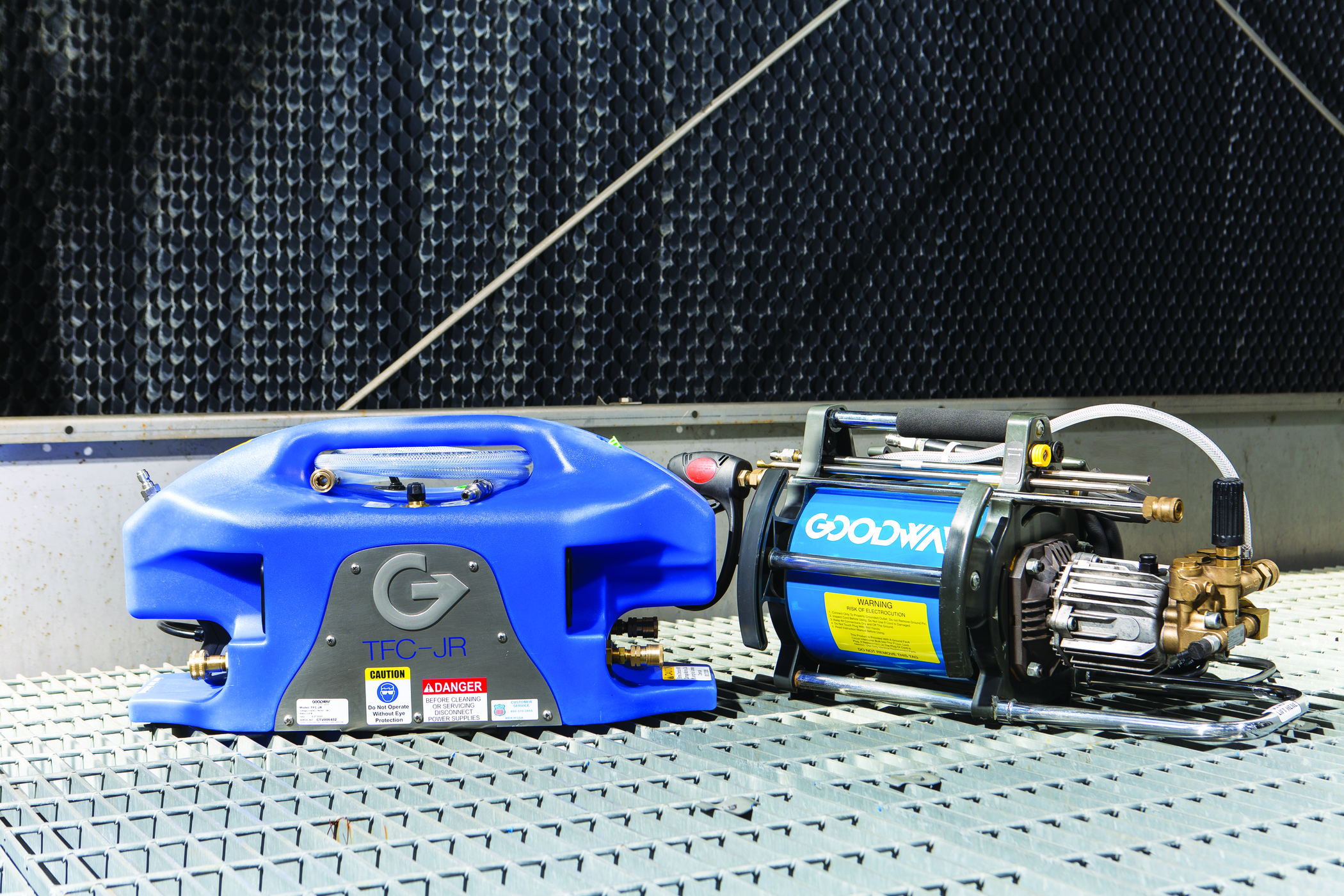 De Goodway® TFC-JR koeltorrenreiniger is een compact, lichtgewicht systeem ontworpen voor het efficiënt reinigen van koeltorrencomponenten zoals luchtinlaatlouvers en druppelvangers. Gebruik voor optimale reinigingsprestaties in combinatie met Goodway® ScaleBreak-gel.