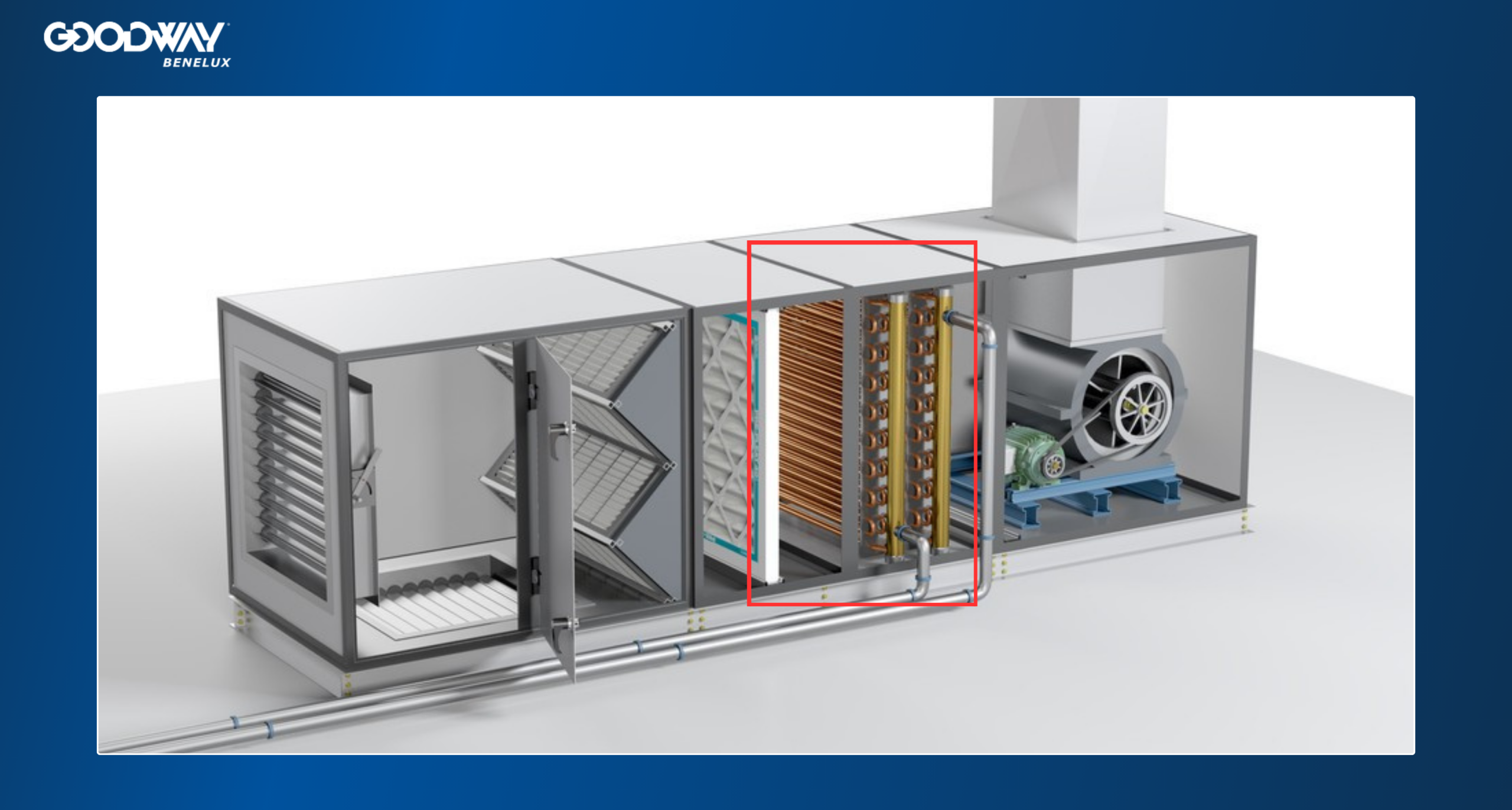 Opmerking: Hoewel AHU’s verschillende gebieden hebben waar vervuiling kan optreden, zijn de Goodway®-oplossingen speciaal ontworpen voor het reinigen van de batterij, zodat een optimale luchtstroom en thermische prestaties op het niveau van de batterij worden gegarandeerd.